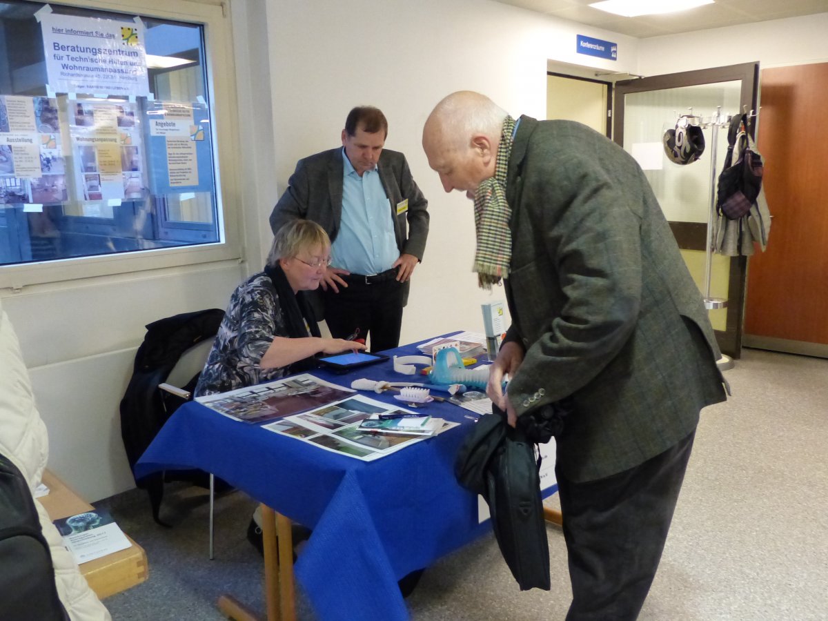 Wenn es um die häusliche Pflege von Patienten geht, steht oft die Suche nach geeigneten (Pflege-)Hilfsmitteln und Wohnraumanpassung im Vordergrund. Herr Wiegel vom Verein Barrierefrei Leben stellte daher das Online-Informationsportal www.online-wohn-beratung.de vor. Hier finden interessierte Besucher Hilfsmittelbeispiele, Möglichkeiten von Umbaumaßnahmen und Tipps zur Kostenübernahme.
