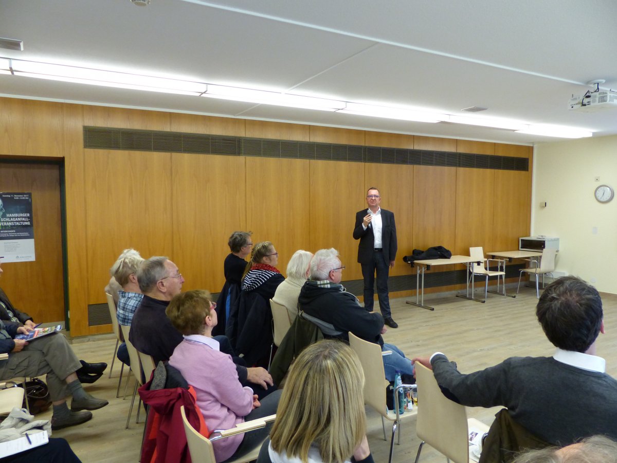 Am Samstag, 11.11.2017 zwischen 09:00 und 13:00 Uhr war die Asklepios Klinik am Ochsenzoll um Prof. Seidel wieder einmal Schauplatz für die traditionelle Hamburger Schlaganfallveranstaltung. Dass dieser Infotag bereits zum sechsten Mal stattfand zeigt, wie groß der Bedarf an zuverlässigen Informationen zum Thema Schlaganfall ist. Wieder fanden sich viele interessierte Besucher im Konferenzraum im Erdgeschoss ein, um sich mit dem bunten Vortragsprogramm zu informieren.